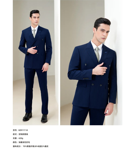 黑色的西装不建议选择纯色,纯黑色有些过于显得单调沉闷。而黑色的条纹刚好可以简化这种单调,更能凸显西装的质感,严肃而稳重,符合领导与老板的气场。